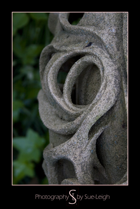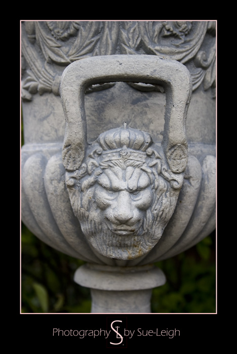 Adrienne and I went to the local JC Raulston Arboretum for a walk and a shoot yesterday . . . this was the side of a really neat looking urn/vase/pot in one of the gardens: