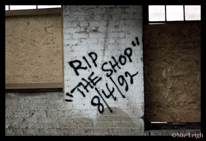Abandoned Warehouse May 12, 2007February 24, 2009 My baby’s back! I felt lost without my laptop! Adrienne, Jason and I went to this abandoned warehouse a couple of days ago which was pretty cool . . . abandoned evidently since 1992 . . . graffiti on the outside of the windows Share this: Click to share on Facebook (Opens in new window) Facebook Click to share on X (Opens in new window) X Like Loading... Related