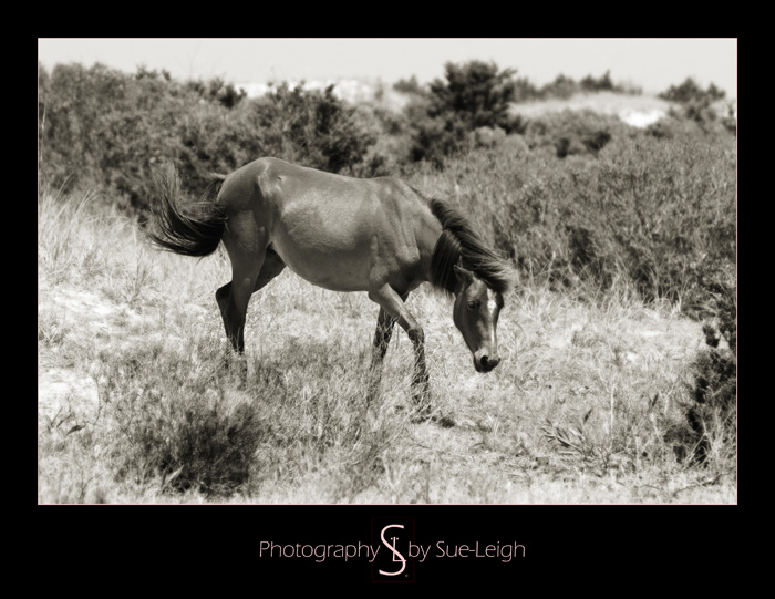 Monday (today) we took a 15 minute, very wet boat trip to Shackleford Island to see the wild horses which I have always wanted to do, but unfortunately we could only stay for an hour and it took 30 minutes to walk 3 miles down the island before we saw any horses (about 9 miles total). I was about 20 feet from them, and I’m sure I could have gotten closer if I wanted to . . . though they do warn you that the horses do bite and kick -heh
