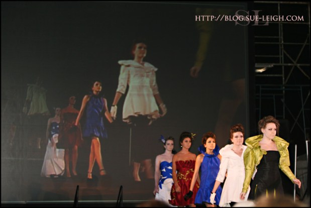 Shelly Smith’s Collection (Recycled Couture), I especially liked the make-up and bits of glitter and the hair pieces of these two models: