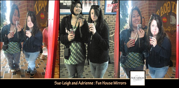at the Navy Pier, we went for a ride on the 150 foot high ferris wheel and saw a great view of the city from up there, checked out some of the shops, etc. There was a fun house that we didn’t pay to do, but there were some fun house mirrors at the entrance way: