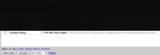 So I check my spam folder almost as regularly as I check my e-mail inbox to see if anything slipped in where it shouldn’t have and then I empty my spam folder.