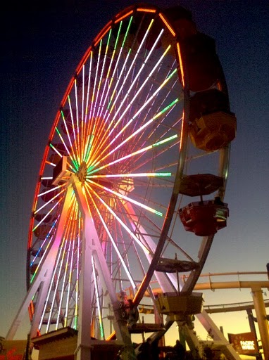 We made it to the Santa Monica Pier in the evening last night. It was friggen cold so we didn’t see much aside from the fair like rides and a few carts on the boardwalk.