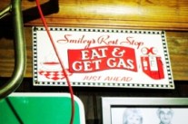 After the movie, we went back to TGI Fridays for dinner and then went back to the hotel for bed time. We saw this funny gas station sign on the wall.