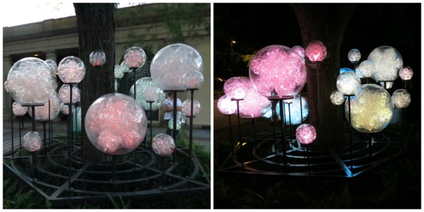 This piece is out in front of the entrance to the gardens, I took a picture when we arrived in the daylight, and then a picture when we left: