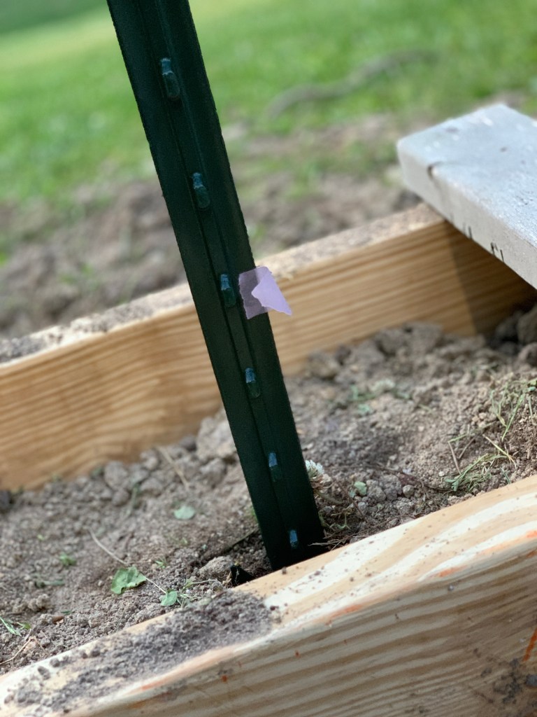 The T- posts I have installed in my flower beds on one side, with about 6 inches on the inside of the bed frame, primarily to plant the vining plants and keep them away from the other plants, and also giving the possibility of having a climbing plant on either side depending on if it likes shade or not. I have decided to make smaller bed for the other sides, so that I’m not dealing with grass growing on the side not in a flower bed. I’ll write another post on how I made the smaller beds for the other side of the arch.