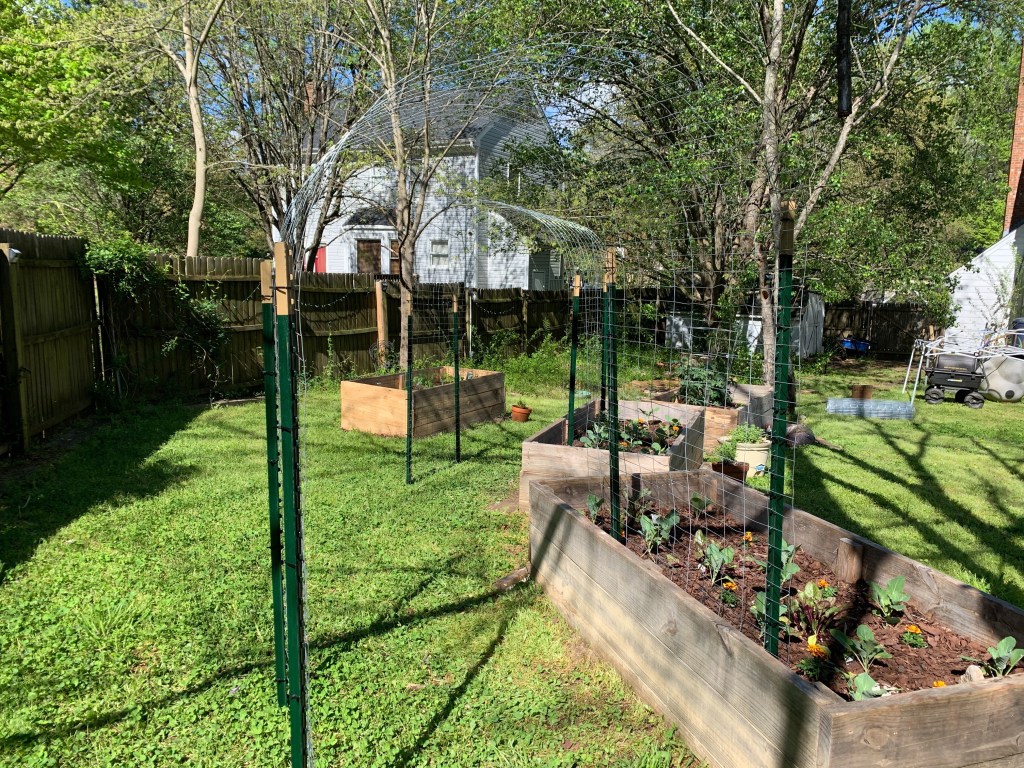This is the first year I will be growing vines on these, so I will have to post an update on the sturdiness once more plants are on these. Things like peas and beans I don’t foresee any issues, but heavier things like melons at the top may create a bend if they managed to get to the very top, but I don’t think there will be an issue on the sides …. especially with two posts on either side. If for some reason these don’t hold up over time, the t-posts will, and I would replace the arches with heavier duty cattle panels (at 4 foot by 16 foot). A little more expensive, around $20 per panel, and harder to transport home. Plus in the current conditions, delivery was not an option or not available at my local hardware store.