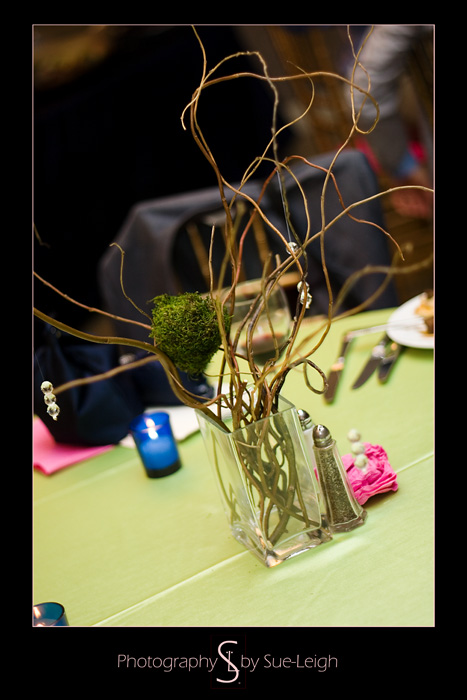 I loved the pink cushions on the gold Chivari chairs and the lime green table cloths