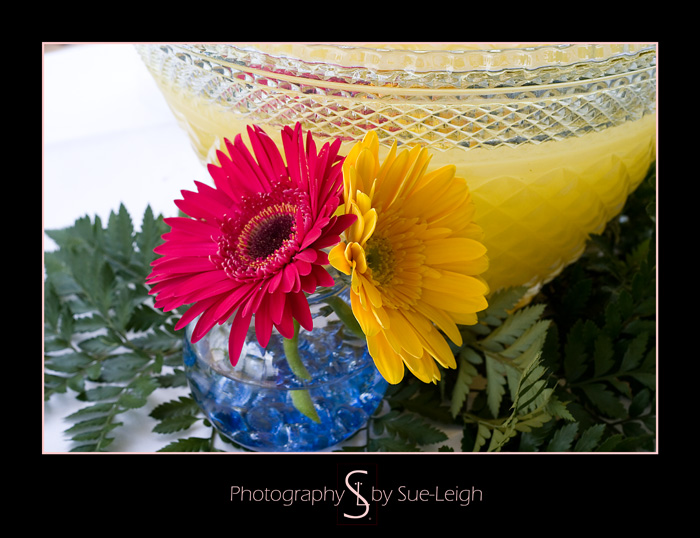 and all of the centerpiece decorations and accents were also Gerber Daisys